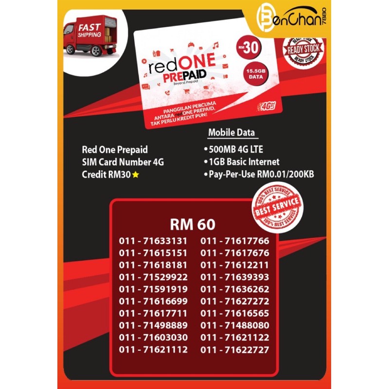 1 Red One Prepaid Sim Card 4g Credit Rm30 Shopee Malaysia